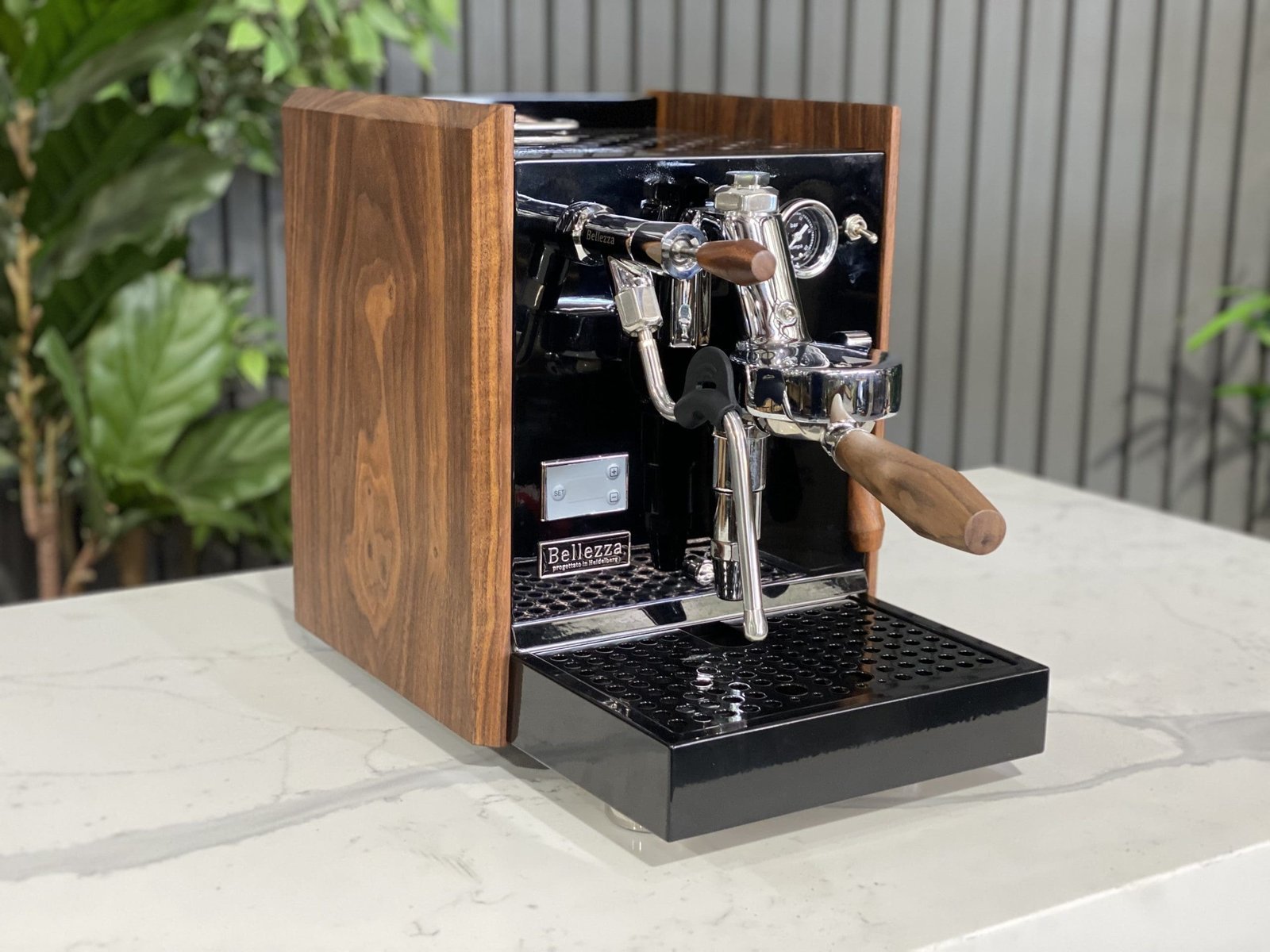 The Bellezza Chiara Leva is a compact masterpiece that proves you don’t need a massive footprint to achieve elite café results. This brand-new unit features a sophisticated matte black body paired with genuine timber accents, creating an organic, high-end aesthetic designed to elevate the ambiance of any modern kitchen or boutique coffee station.