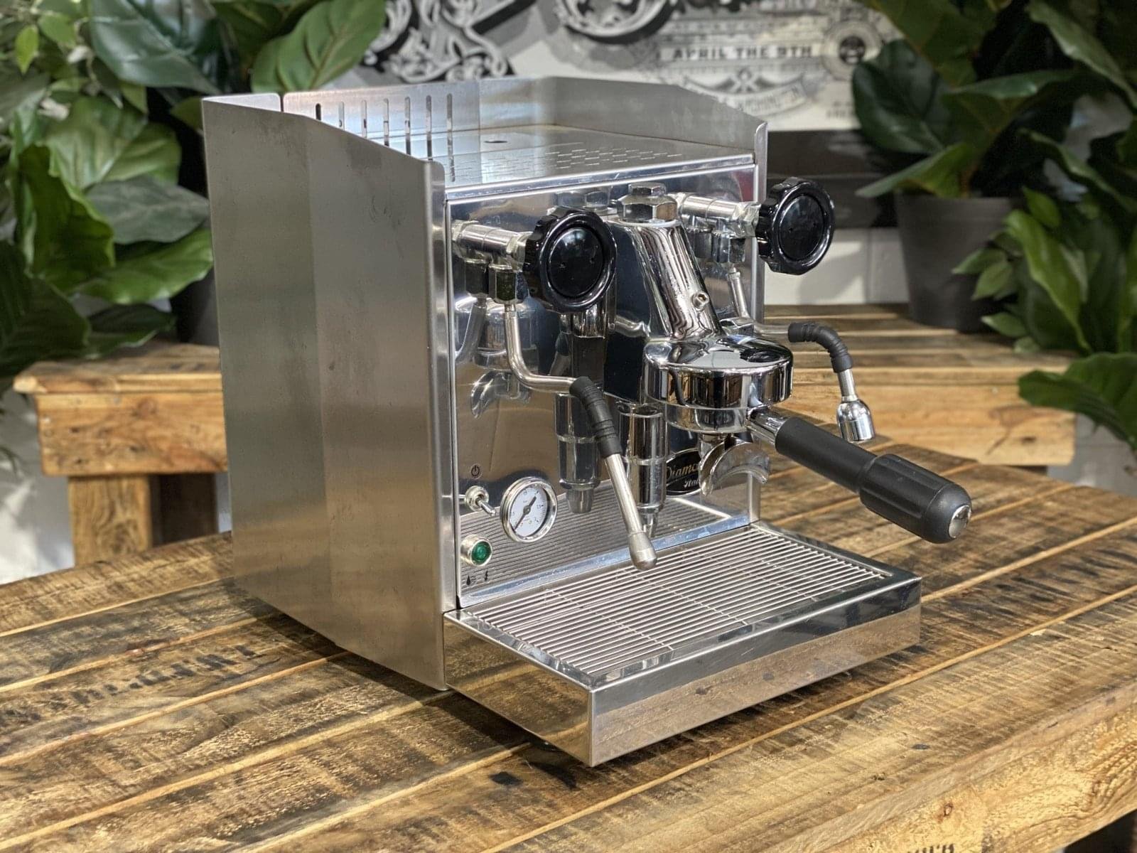 The Diamond Italia 1-Group is a professional-grade espresso machine that combines a sleek, durable stainless steel body with the legendary performance of the E61 group head. Designed for the serious home barista or a small office setting, this machine offers the thermal stability and pressure control required for café-quality extraction.