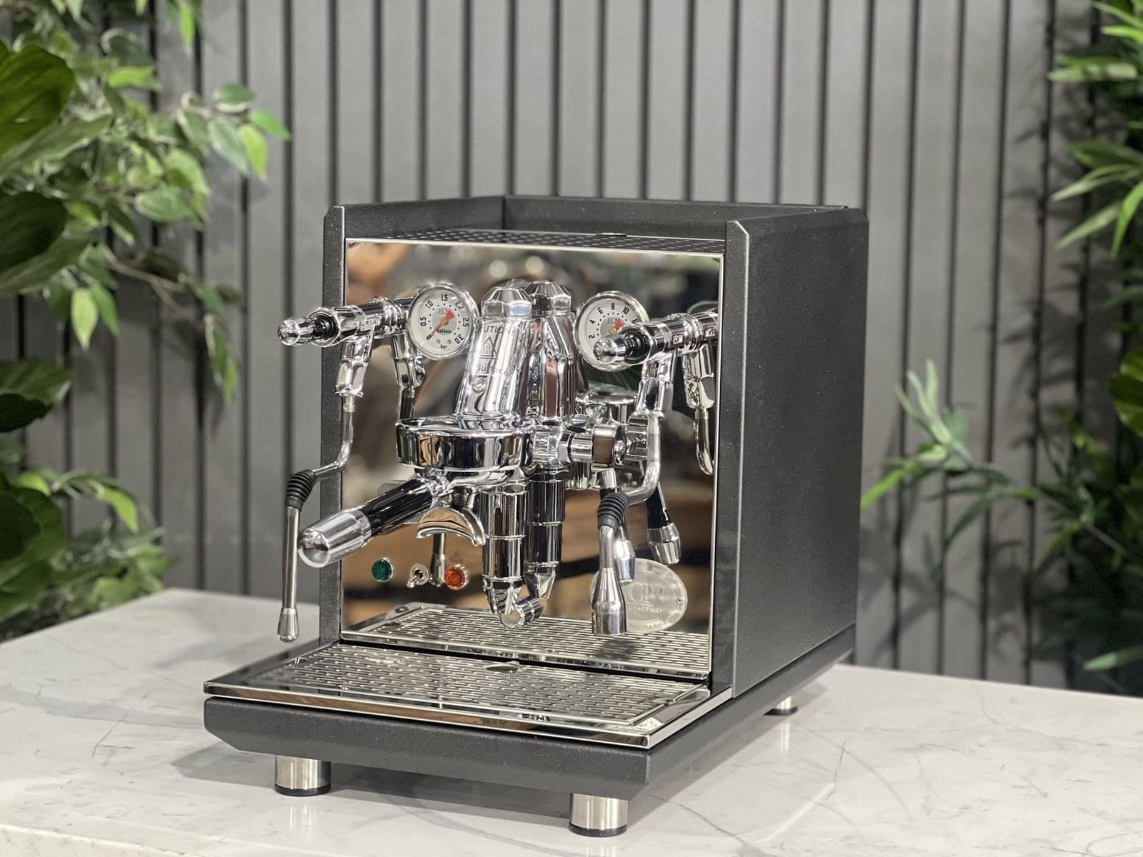 The ECM Synchronika is widely regarded as one of the finest prosumer espresso machines on the market, blending German precision engineering with Italian heritage design. This special Anthracite edition elevates the aesthetic further, featuring stunning powder-coated dark grey side panels that contrast beautifully with the polished stainless steel front and chassis. It is a machine built for the perfectionist who demands both visual elegance and top-tier performance.