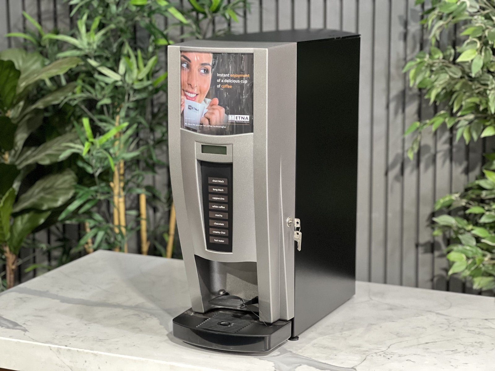 Engineered for reliability, the Etna Mundo features sealed ingredient canisters to ensure hygiene and freshness. Its intuitive button operation and LCD display make it easy for anyone to brew their perfect cup, while the automatic cleaning program significantly reduces daily upkeep.