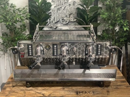 Technically, the Mirage is a highly evolved thermo-syphon heat exchanger machine. It utilizes a massive 22L copper boiler to maintain extreme steam pressure and thermal stability. Its modified E61 group heads are designed for a “soft” passive pre-infusion, which gently saturates the coffee puck to reduce channeling and maximize extraction quality. This 3-group Triplette model is a true high-volume powerhouse, capable of handling the most demanding morning rushes with ease.
